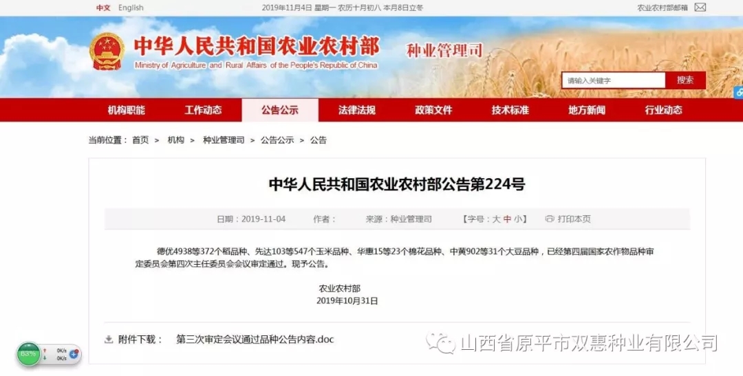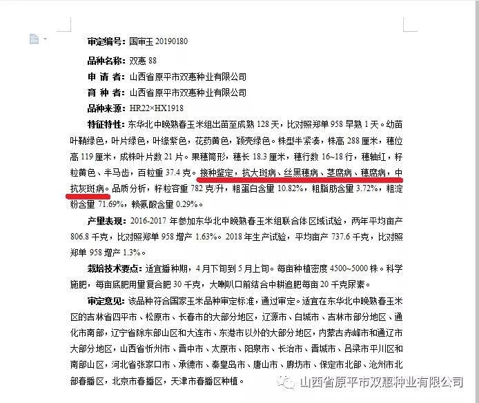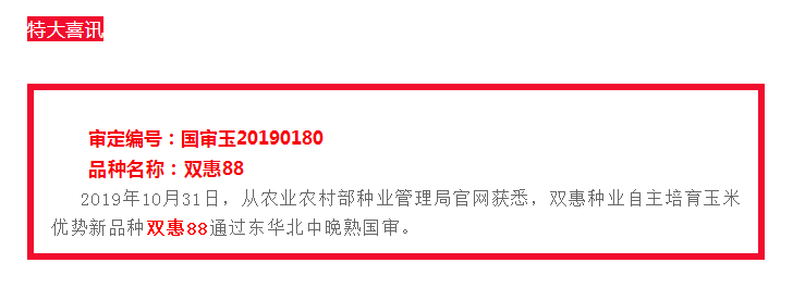 熱烈祝賀雙惠88通過東華北中晚熟國審