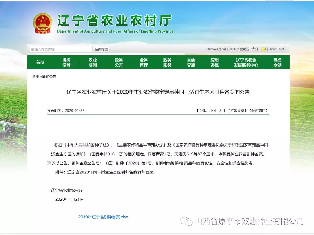 遼寧省予以公告,公告號(hào):(遼)引種【2020】第1號(hào)